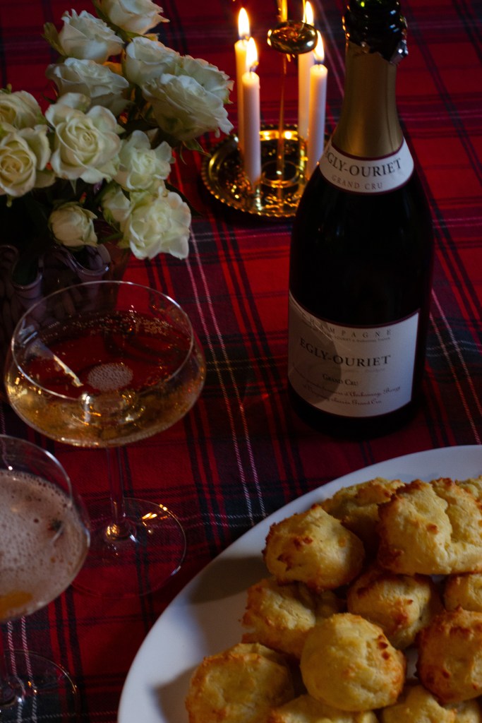 Though a heavy fruit presence, this champagne would still do well served with dessert or something on the sweeter side. However I wanted a sharper flavor to contrast so I paired this particular wine with gougères, a savory choux pastry— think eggy cheese puff. The recipe couldn’t be simpler, anyone could make and everyone loves.