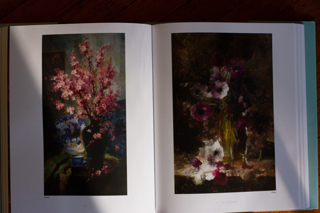 Perhaps my favorite rose painter of all has come back into my life by happy accident. I was watching a modern artist mixing colors and she alluded to Frans Mortelmans highlight techniques. The moody work of Frans Mortelmans has always captivated me. Born onto the backside of the Romanticism wave, Belgian artist Frans Mortelmans kept virtuous to conveying the bold and powerful colors of nature in his works. This was at a time when Impressionism was beginning its assault on color value.