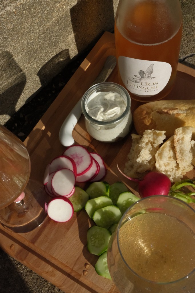 The grape was beautiful and different. Mauzac from Gaillac, I hadn’t encountered before. Soft fruit, healthy acid, light effervescence. Paired very well with crispy fresh radish and cucumbers at golden hour under an umbrella of cherry blossom.